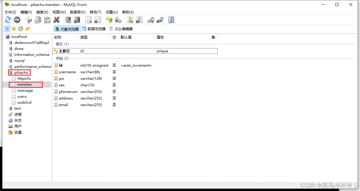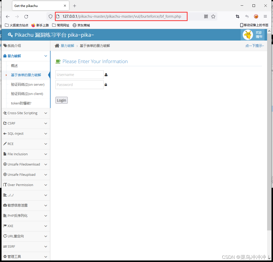 5、打开pikachu,随意打开一个页面查看对应的数据库文件