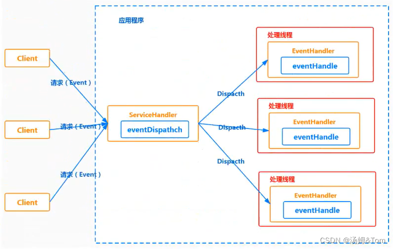 服务端程序处理传入多路请求,并将它们同步分派给请求对应的处理线程,Reactor 模式也叫 Dispatcher 模式。即I/O多路复用统一监听事件,收到事件后分发(Dispatch 给某进程),是编写高性能网络服务器的必备技术之一。