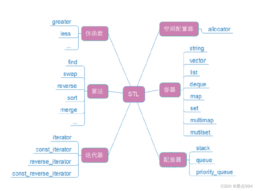 STL(standard template libaray-标准模板库):是C++标准库的重要组成部分,不仅是一个可复用的组件库,而且 是一个包罗数据结构与算法的软件框架。