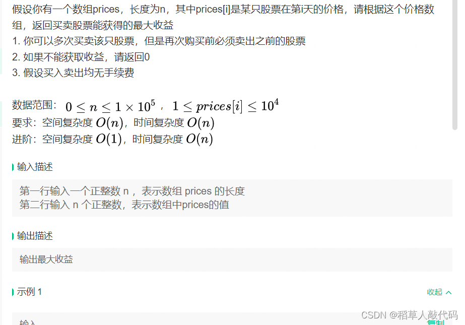 首先是简单版本:用dp[i][0]表示第i天过后手里没有股票的最大收益,用dp[i][1]表示第i天过后手里有股票的最大收益.