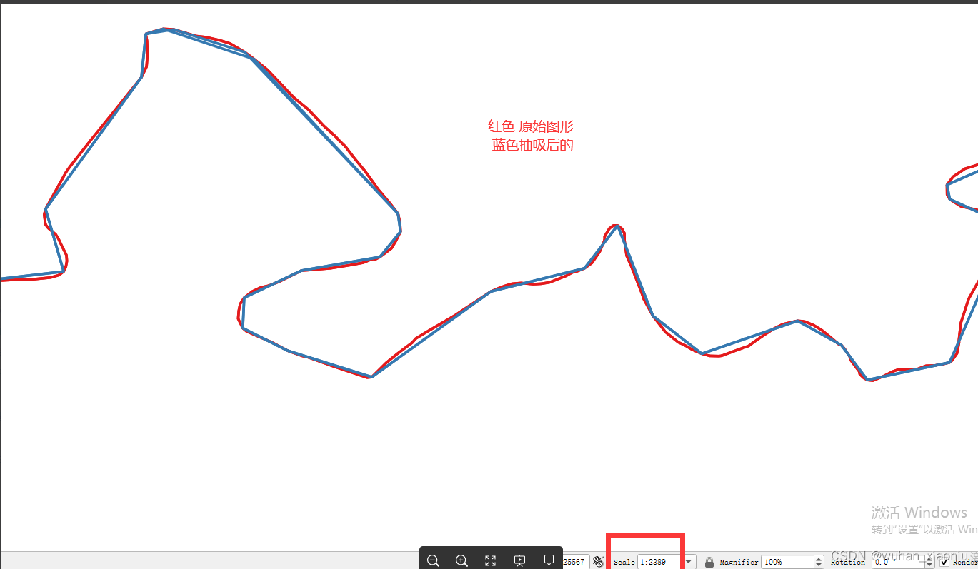 3、实际效果,小比例看不出来,大比例尺有稍微区别,在标识示意范围的应用中可以忽略。