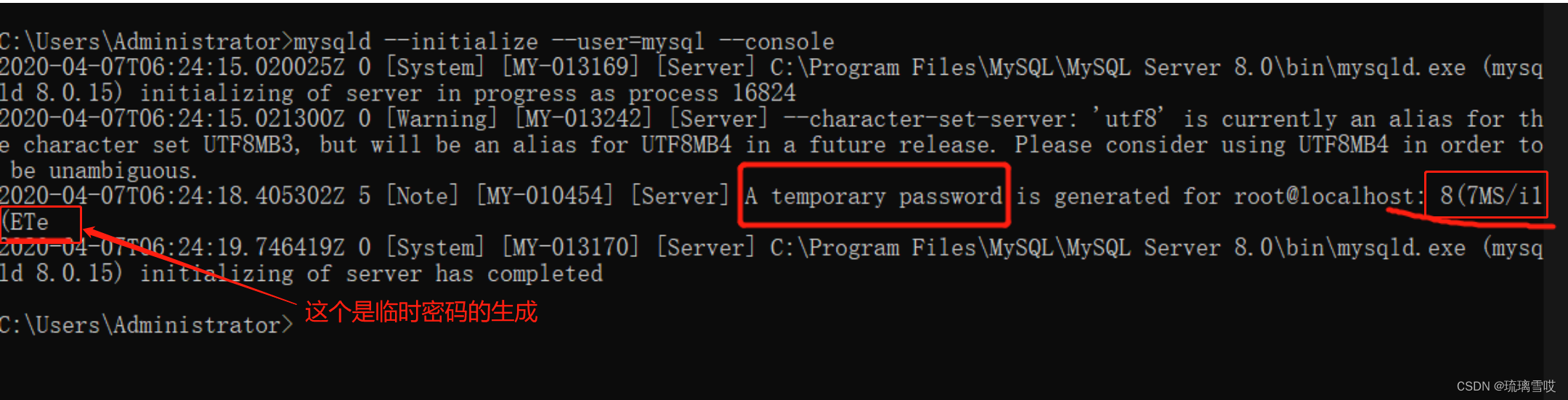 如果命令行敲为mysqld --initialize-insecure ,没有加–console 在登录mysql时,直接点击enter即可进入,此时的密码为空密码,但是之后会生成一个密码,是我们看不到的,下一次就登录不进去mysql了。(密码错误)
