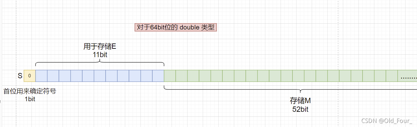 float类型中 分配给E的空间为11bit M 为52bit ,且补正值为1023.