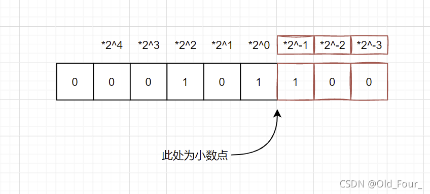 也就是说 小数点后面的5其实是 2的-1次方,即 0.5