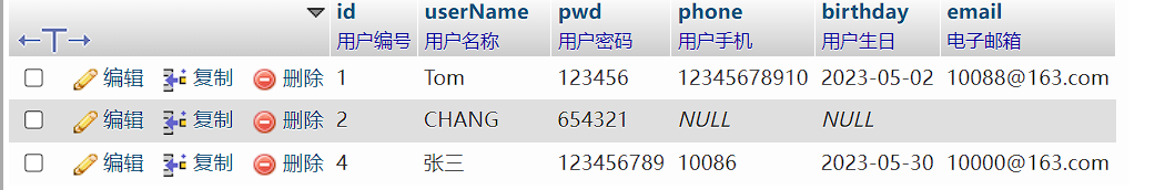 VALUES ('张三','123456789','10086','2023-05-30','10000@163.com')";