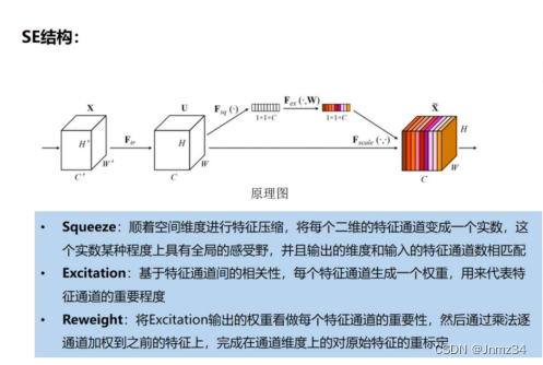 通过自动学习的方式(用另外一个神经网络实现)获取到每个特征通道的重要程度,然后用这个重要程度去给每一个特征通道赋予权重值,从而让神经网络重点关注某些特征通道。在神经网络中加入注意力机制有很多方法,可以在空间维度引入注意力机制(eg inception结构,让并联的卷积层分配不同的权重),也可以在通道维度引入attention机制。SENet的核心思想在于通过全连接网络根据loss去自动学习特征权重(并不是直接根据特征通道的数值分布来判断),使得有效的特征通道权重大。SENet-pytorch代码链接。