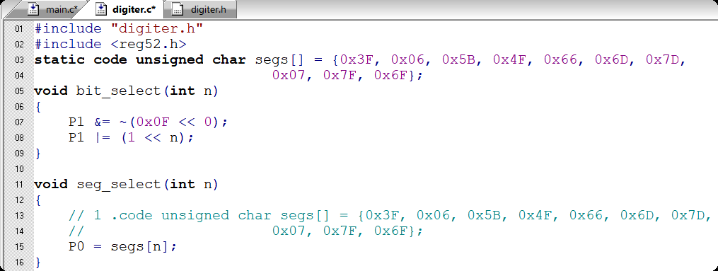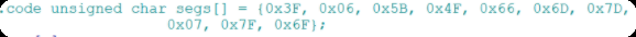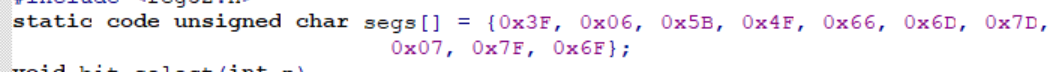 当数码管显示数字表是确定时,其前加入code则将放于ROM中 :