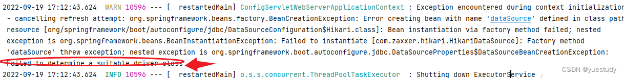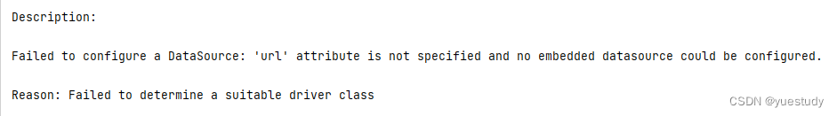 2.配置数据源失败:未指定“url”属性,无法配置嵌入式数据源。