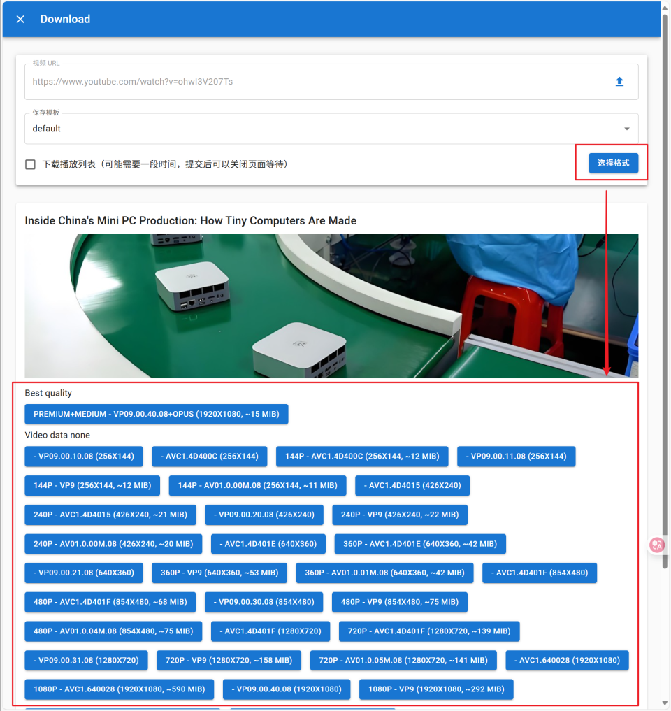 🔺然后在下次下载的时候就会列出非常多不同分辨率的视频与不同格式的音频供我们选择。不过如果没有特殊需求,这里并不建议大家开启视频/音频格式选择,因为该工具会默认为我们下载最高品质的媒体文件。