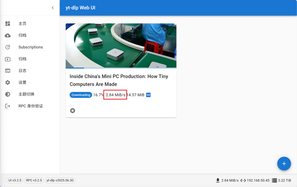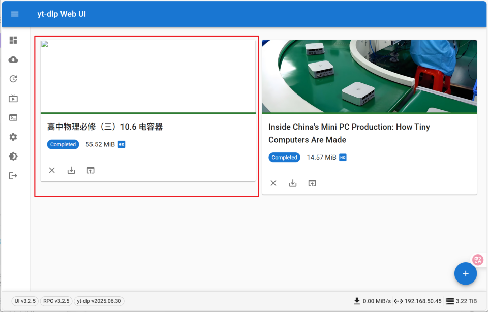 🔺同样的方式我下载一个国内B站视频,可以看到这边是不受任何网络限制,直接跑满家里的带宽上限,非常给力!只不过看不到封面。