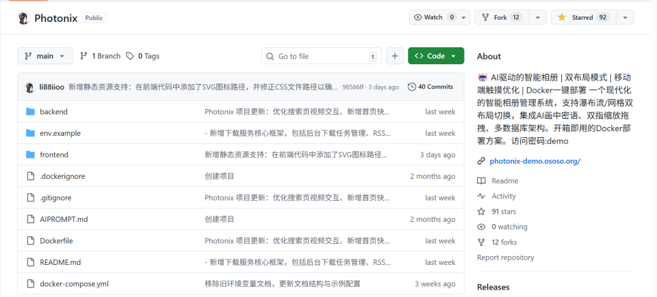 项目 GitHub 主页(记得Star支持作者哈~):https://github.com/li88iioo/Photonix