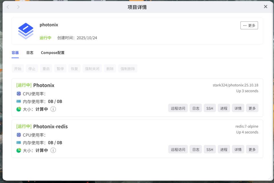 services: app: image: stark324/photonix:25.10.18 container_name: Photonix ports: - "13001:13001" # 项目Web页面打开端口 environment: - PORT=13001 - NODE_ENV=production - LOG_LEVEL=info - PHOTOS_DIR=/app/photos - DATA_DIR=/app/data - REDIS_URL=redis://redis:6379 - JWT_SECRET=QGcnthMzTbRyCseExXTpDZ0tn9Z6nHEr - ADMIN_SECRET=stark123456 # 超级管理员密钥,自定义设置,建议设置复杂一点 volumes: - ./photos:/app/photos # 映射照片目录 - ./Docker/photonix/data:/app/data # 映射photonix子文件夹实际路径 restart: unless-stopped depends_on: - redis networks: - photonix-network redis: image: redis:7-alpine container_name: Photonix-redis command: redis-server --appendonly yes volumes: - ./Docker/photonix/redis:/data # 映射redis子文件夹实际路径 restart: unless-stopped networks: - photonix-network networks: photonix-network: driver: bridge