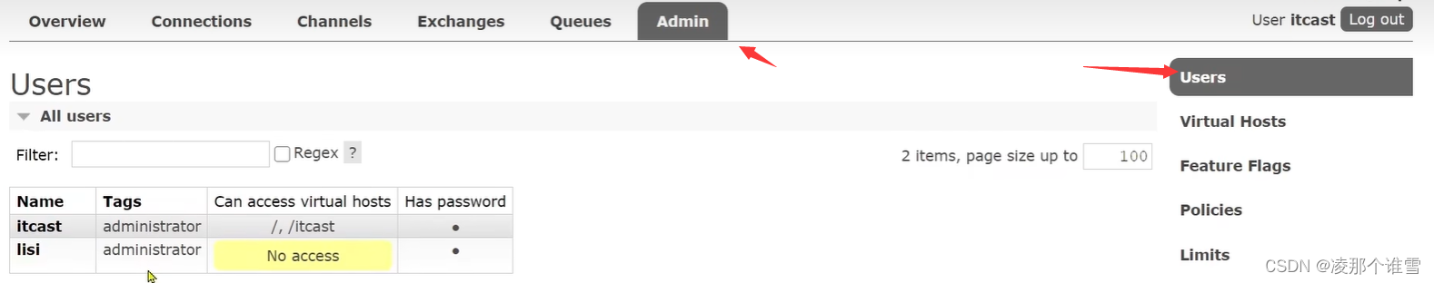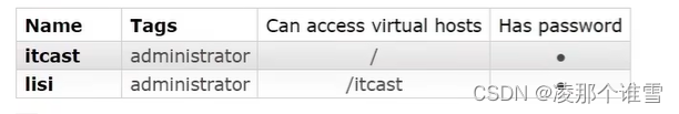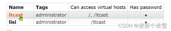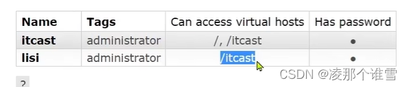 此时发现itcast有两个虚拟主机的权限,而lisi还是一个都没有