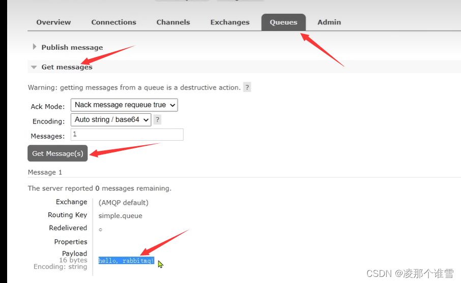 4、利用channel向队列发送消息基本消息队列的消息接收流程: