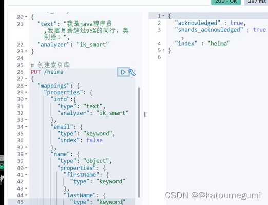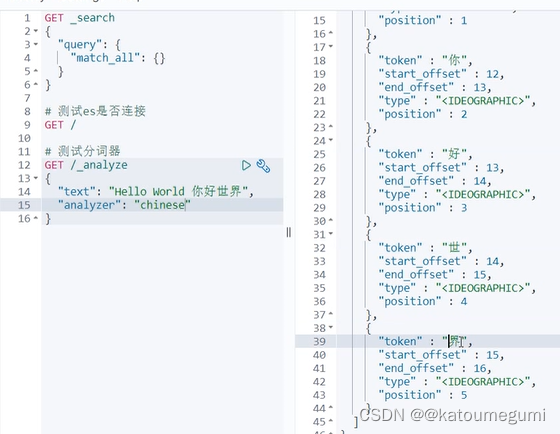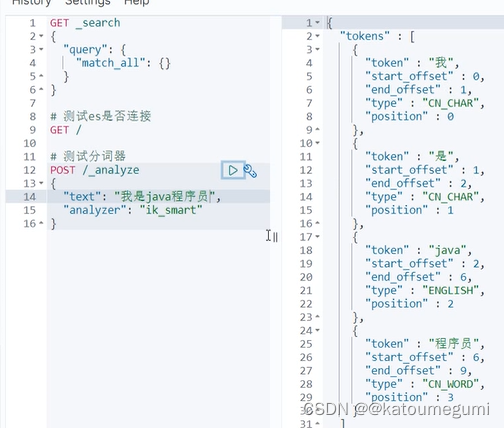 1、ik_smart:智能切分,粗粒度2、ik_max_word:最细切分,细粒度