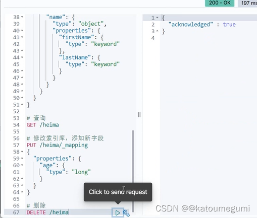4、发送请求。调用RestHighLevelClient#t.xxx()方法,xxx是index、get、update、delete