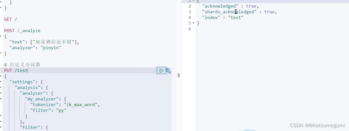 1、创建索引库时,在settings中配置,可以包含三部分2、character filter