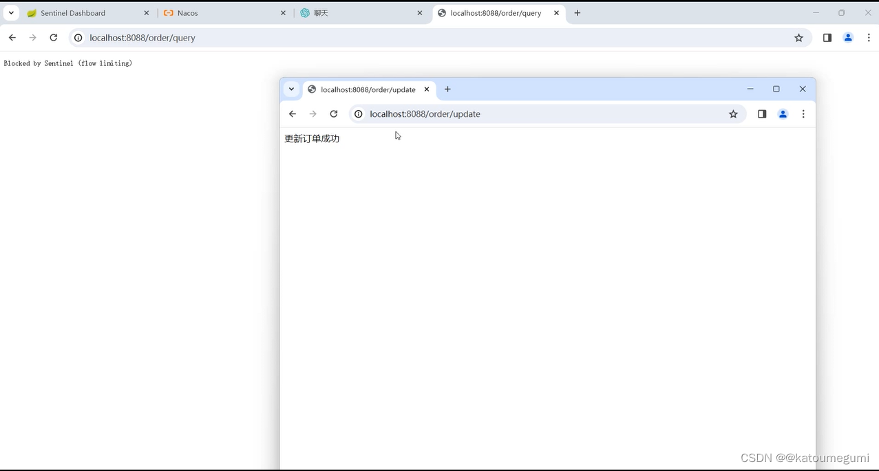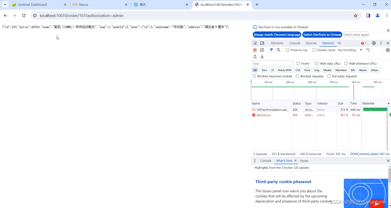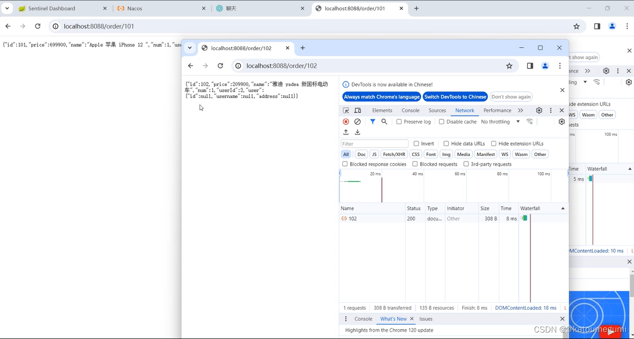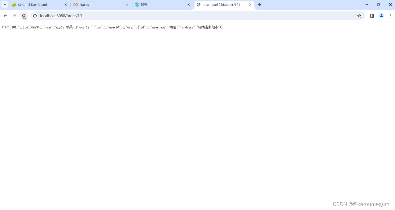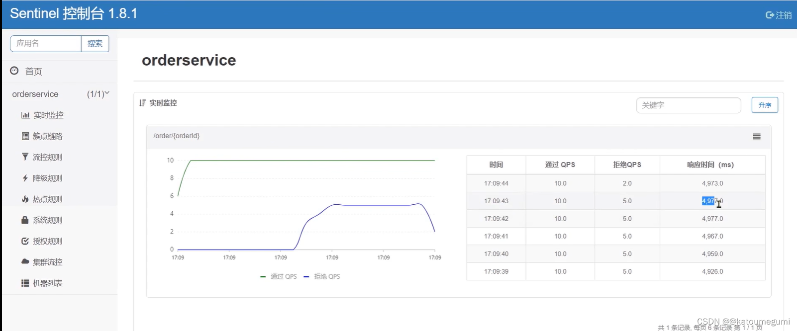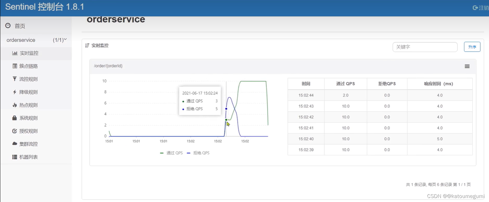 访问loaclhost:8848,进入nacos,访问localhost:8088/order/103, 刷新sentinel控制台,可以看到新的列表