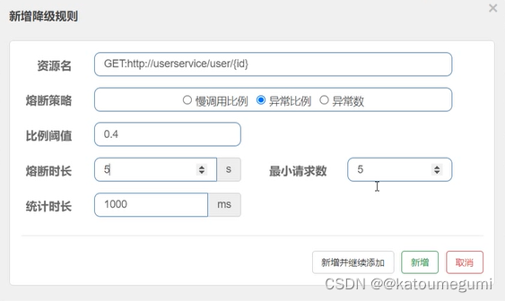 2、异常比例:统计单位时长内异常调用的比例,超过阈值则熔断