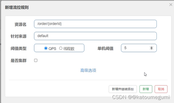 2、关联:高优先级资源触发阈值,对低优先级资源限流。3、链路:阈值统计时,只统计从指定资源进入当前资源的请求,是对请求来源的限流