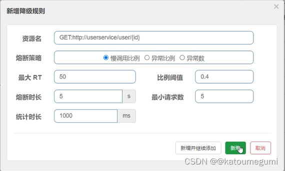 1、慢调用比例:超过指定时长的调用为慢调用,统计单位时长内慢调用的比例,超过阈值则熔断