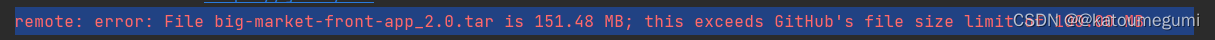 1、查看过大文件是谁2、使用该命令删除过大文件git filter-branch --force --index-filter 'git rm -rf --cached --ignore-unmatch 文件名' --prune-empty --tag-name-filter cat -- --all例如:3、出现这个报错4、执行该命令git stash5、强制推送master分支(也可以是其他分支。origin也可以改成其他仓库)6、清空垃圾(防止有残余)