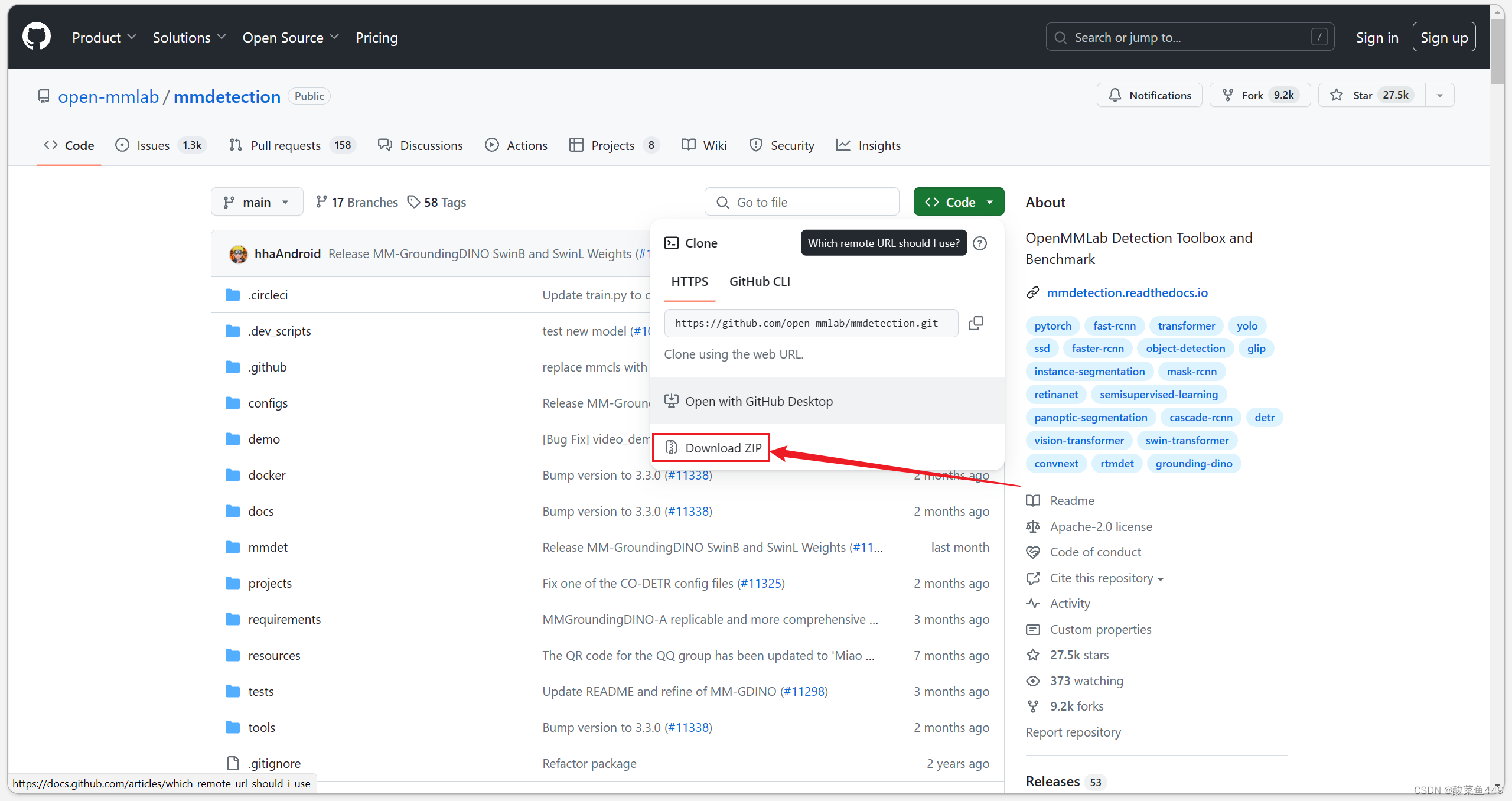 在github官网下载mmdetection代码。