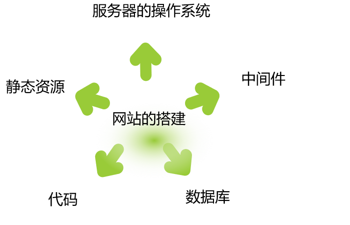 一个网站的搭建离不开服务器、中间件、数据库、代码、静态资源这五个部分