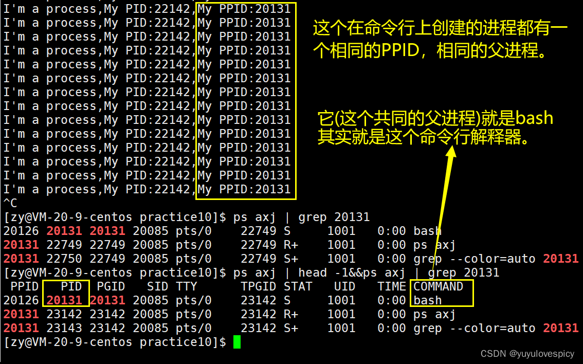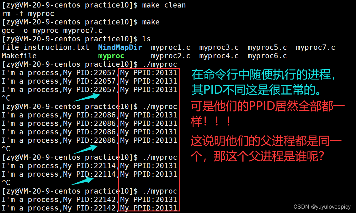 命令行上启动的进程,其父进程都是bash !!!!!!这里其实就是bash创建了你这个(子)进程myproc。