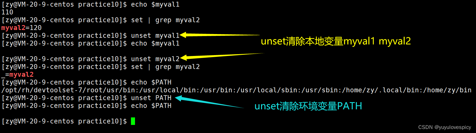 4. unset:清除环境变量