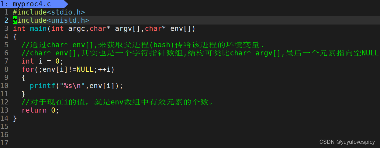 补充:父进程在fork创建子进程的时候,父进程的环境变量也都会传给子进程。在子进程中,子进程在执行它main函数时我们可以通过char* env[]这个参数来获取到父进程创给子进程的环境变量。