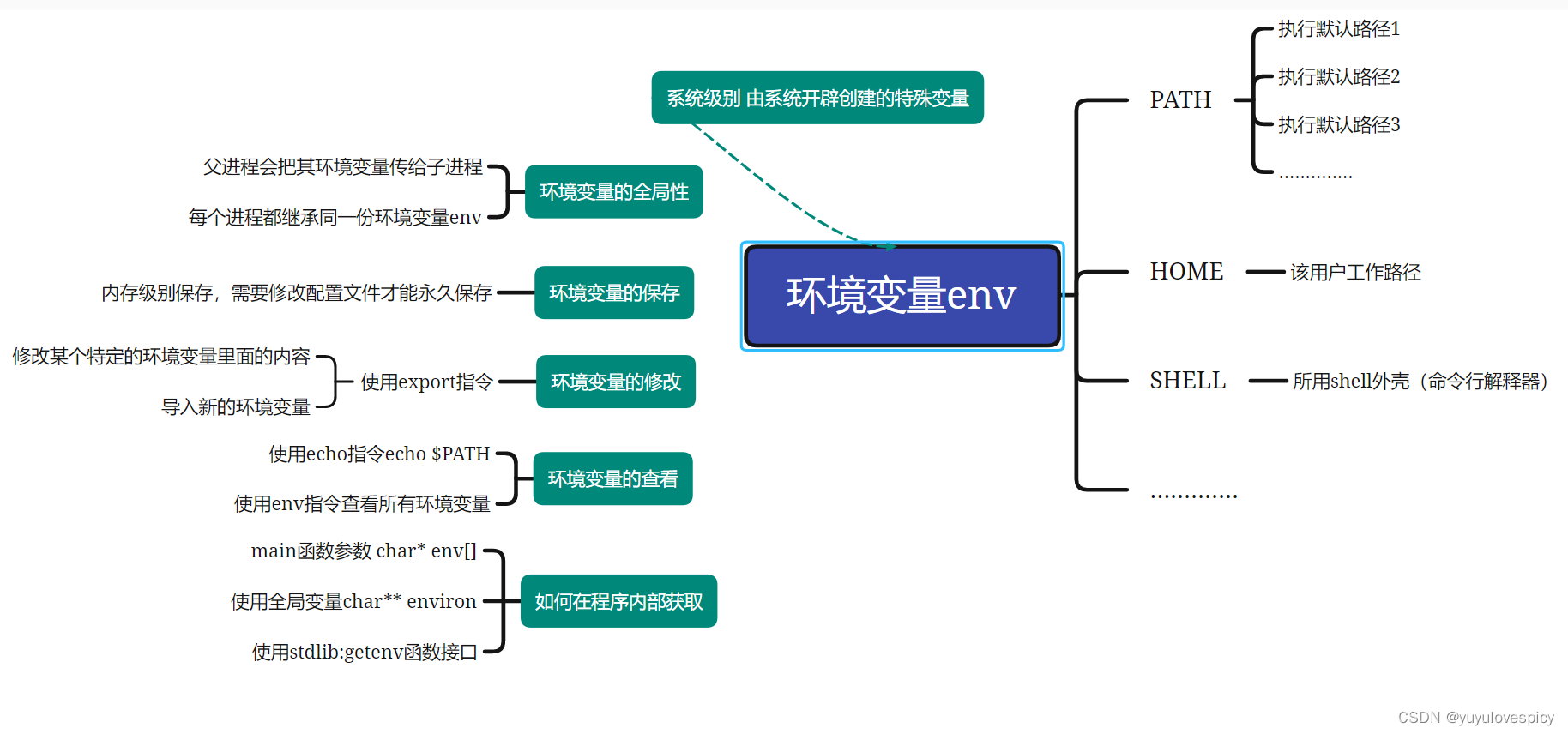 然后这些在命令行bash中创建出来的子进程,自己作为新的父进程,再fork()创建出的子进程,就会再把这一份从bash获得的全局环境变量传承给他们的子进程。