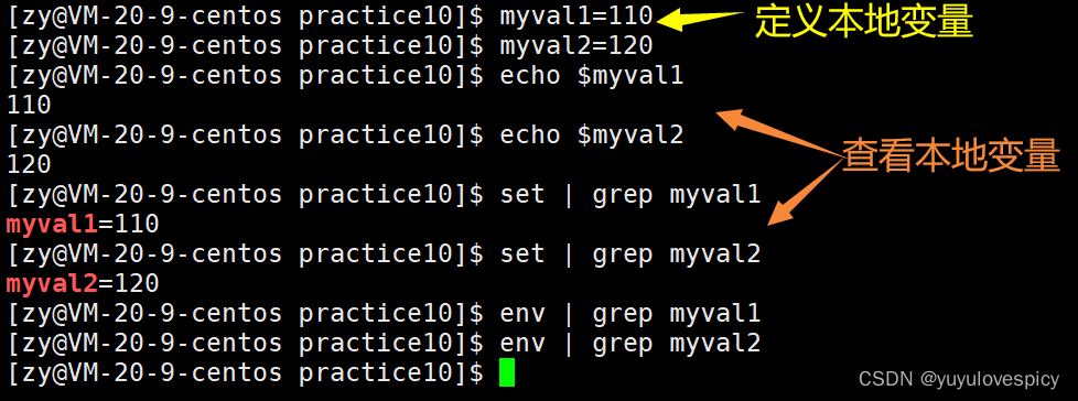 事实上,系统不仅允许你创造一些系统级别(全局)的变量,同时也允许你创造一些本地变量。比如我们之前看到的PATH,HOME,SHELL,是OS创造的环境变量,比如我们定义的myval1,myval2,这些是我们定义的本地变量。