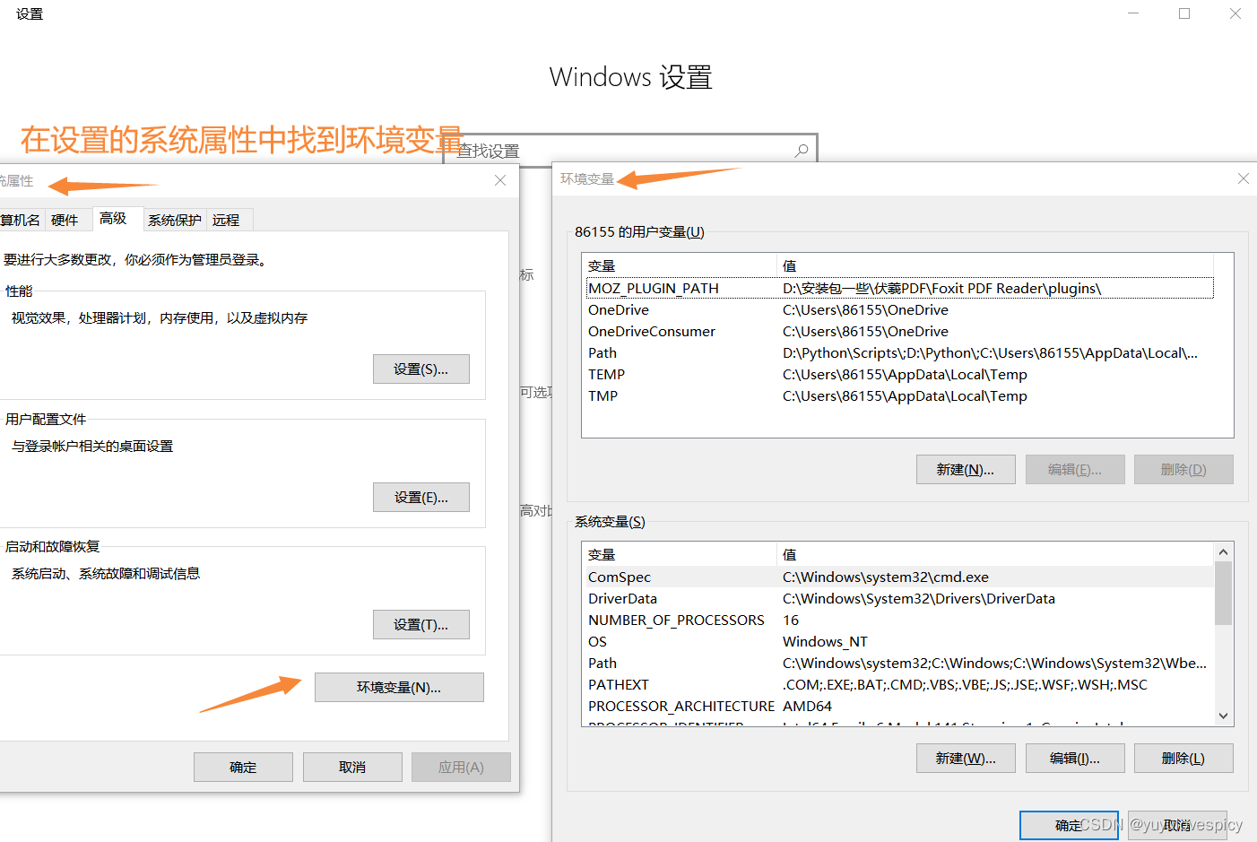 在Windows操作系统下,也是有环境变量这个概念的,例如: