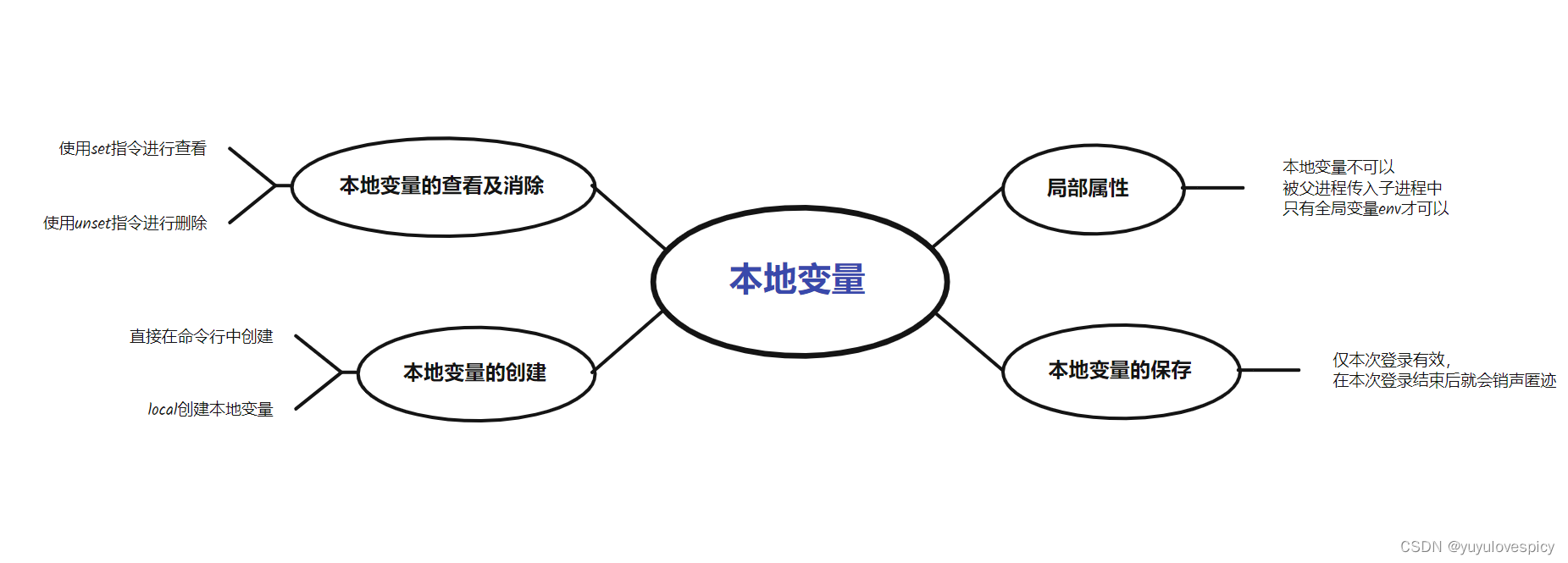 下面了解什么是本地变量(当然本地变量也是一种环境变量,所以以上五个指令对全局的/本地变量都或多或少有效。但是全局的环境变量与本地变量之间有着本质的区别,上面各个指令也分别专职针对环境变量和本地变量,最后会总结成一个表格)。