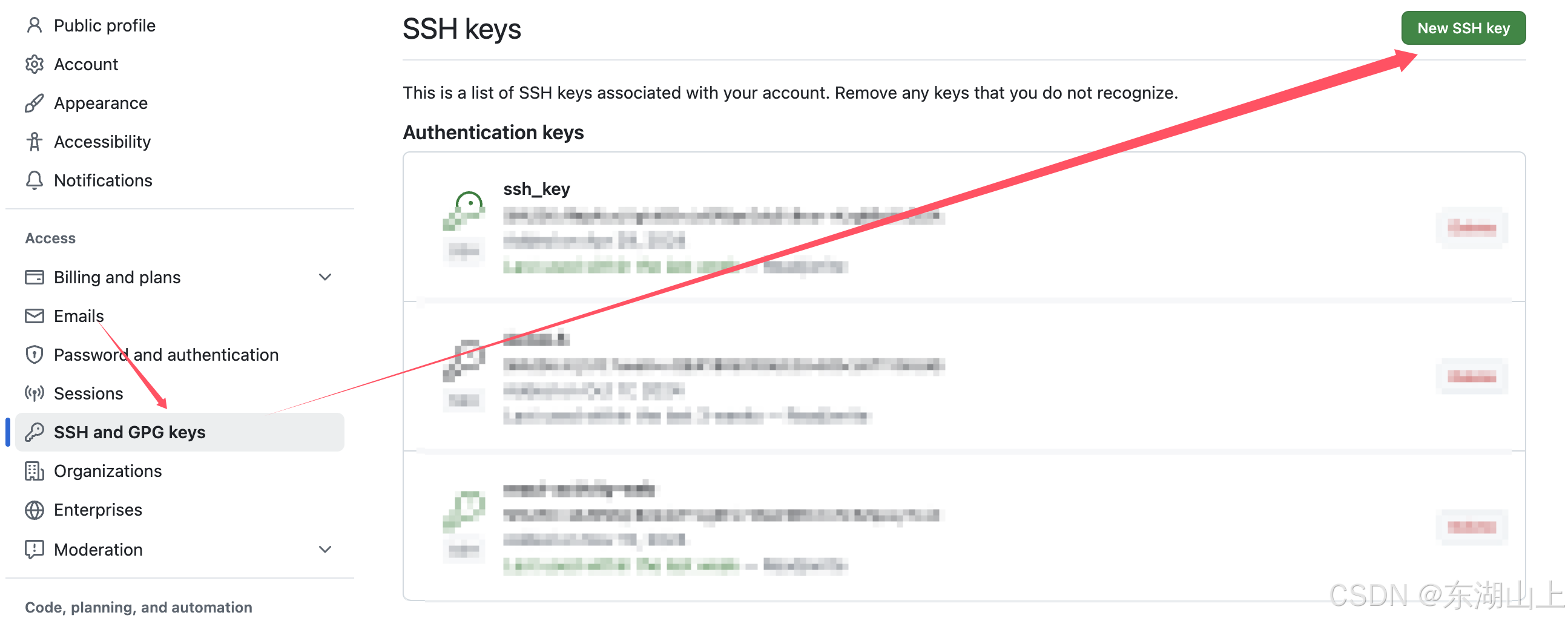 之后会在命令行中生成一个密钥,我们将这个密钥添加到自己的github的ssh设置位置就好了。