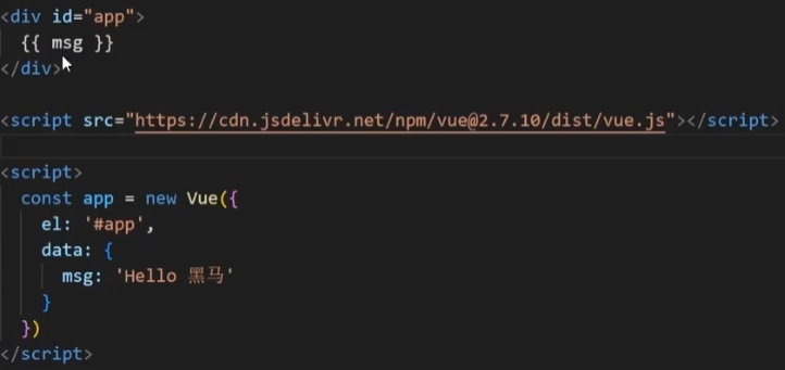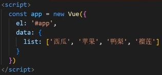 4.指定配置项 el data =>渲染数据(el代表控制的是哪个盒子,data提供数据)