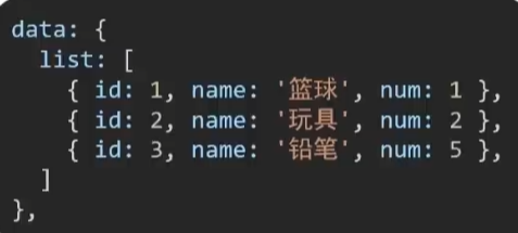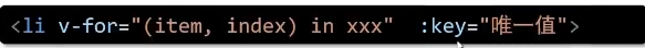 注意: v-for一般还要加一个key,key的作用是给元素添加唯一标识,便于Vue进行列表项的正确排序复用, key的值只能是 字符串 或 数字类型,并且key的值必须具有 唯一性,推荐使用id,不推荐index