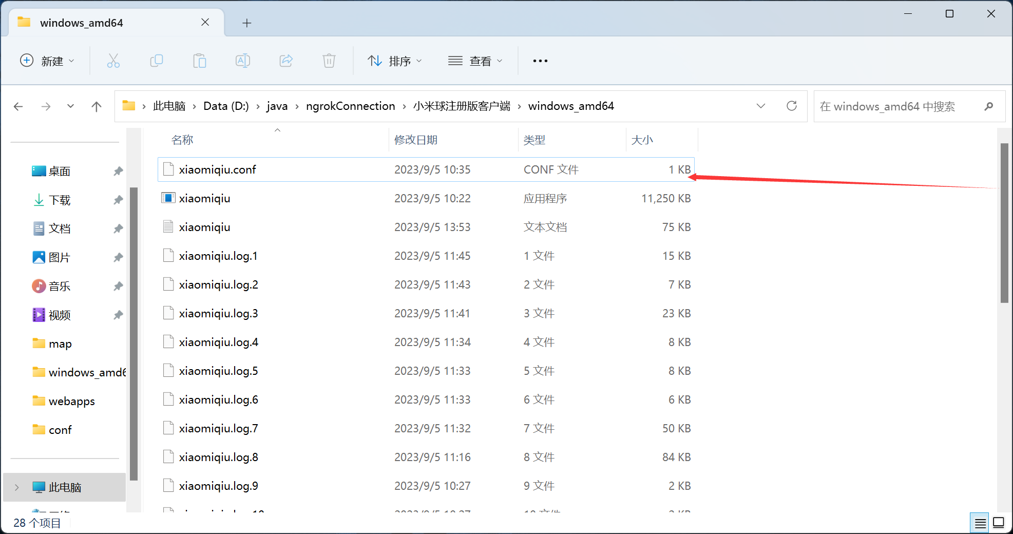 然后再下载小米球的windows_amd64版本,修改其中的conf文件,auth_token设置为自己的。
