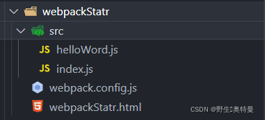 1.首先新建一个文件夹如,webpackStatr,然后在文件夹下新建一个src文件,再新建两个js文件helloWorld.js和index.js如下: