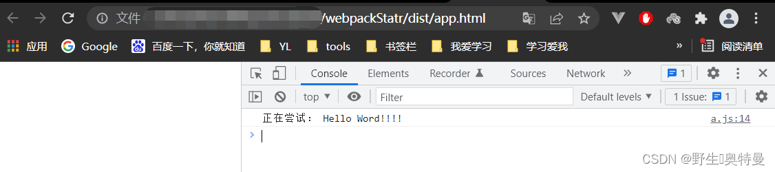 可以看到helloWorld.js中的函数打印被正常的打印在控制台上了,这就是webpack的简单使用,大家加油!!!!!!!!!!!
