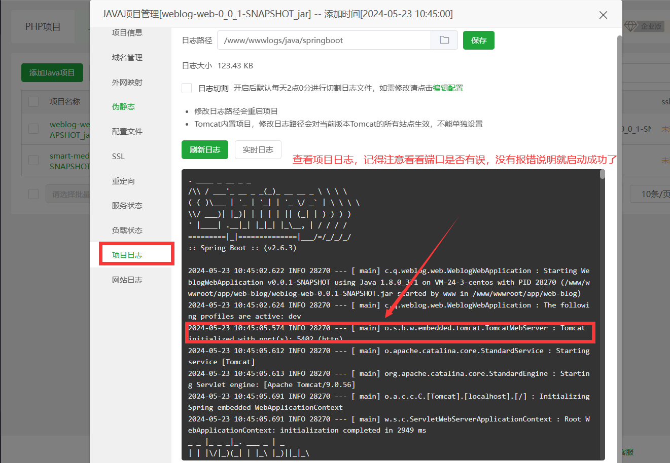 进入宝塔的网站页面,选择Java项目,然后进行配置
