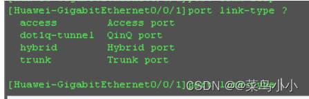 [Huawei-GigabitEthernet0/0/1]port link-type hybrid -----------将接口的模式修改为hybrid