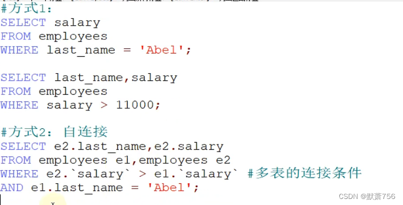 mysql> SELECT last_name,salary FROM employees WHERE salary>(SELECT salary FROM employees WHERE last_name='Abel');