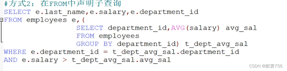 相关子查询的需求:查询工资大于本部门平均工资的员工信息。