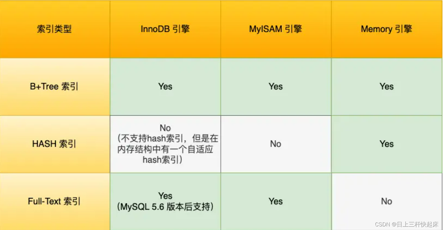 从数据结构上来讲:B+树索引、Hash索引、Full-text 索引;