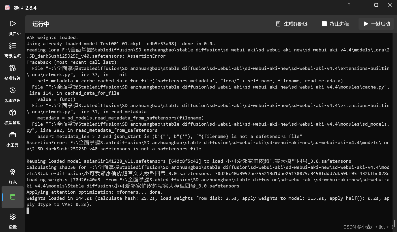 如果我们误将Lora模型放到大模型目录下或相反,则我们在界面将无法正常切换模型。