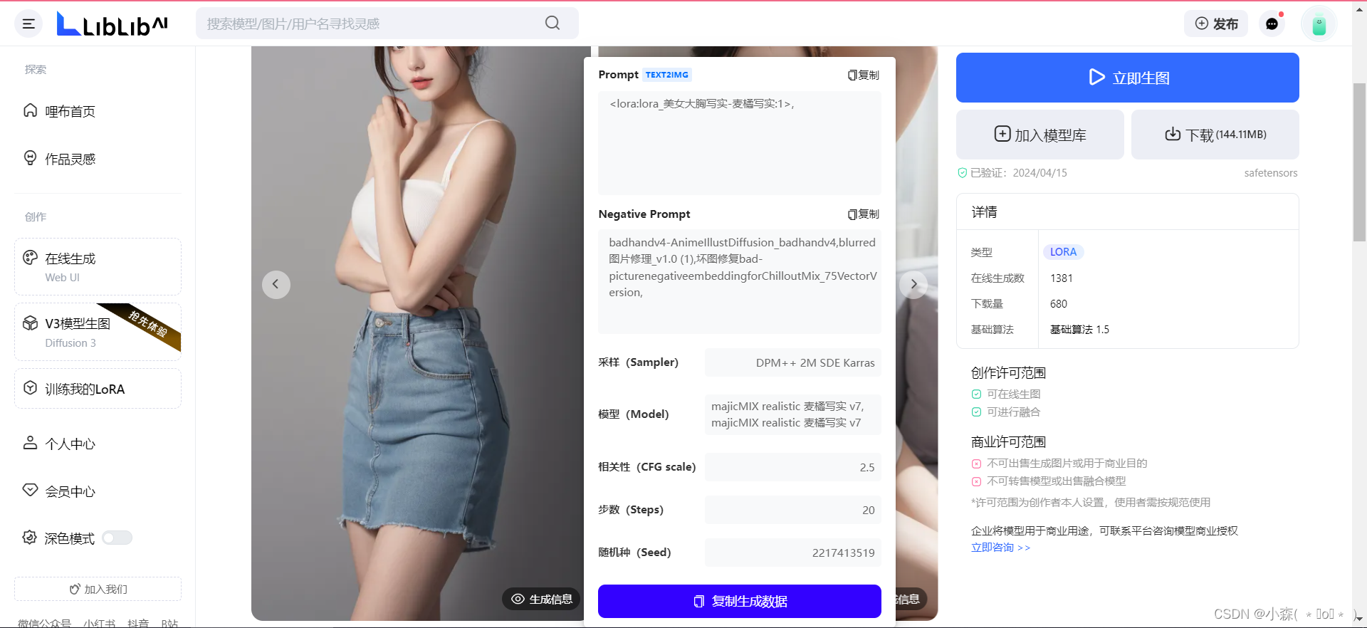 我们可以去网站下载别人训练好的模型(尾缀 ckpt / safetensors),常见大小:2G -7G