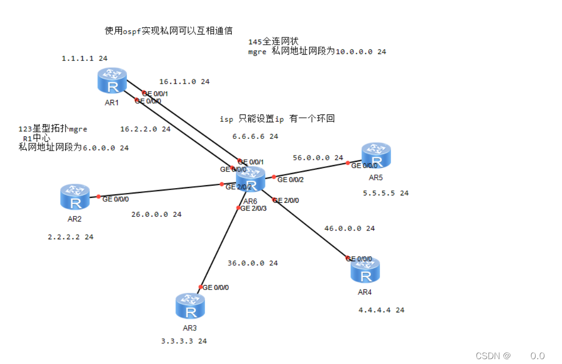 为了组建网状mgre 我们采用让R4找R1注册 让R1找R5注册 让R5找R4来组建