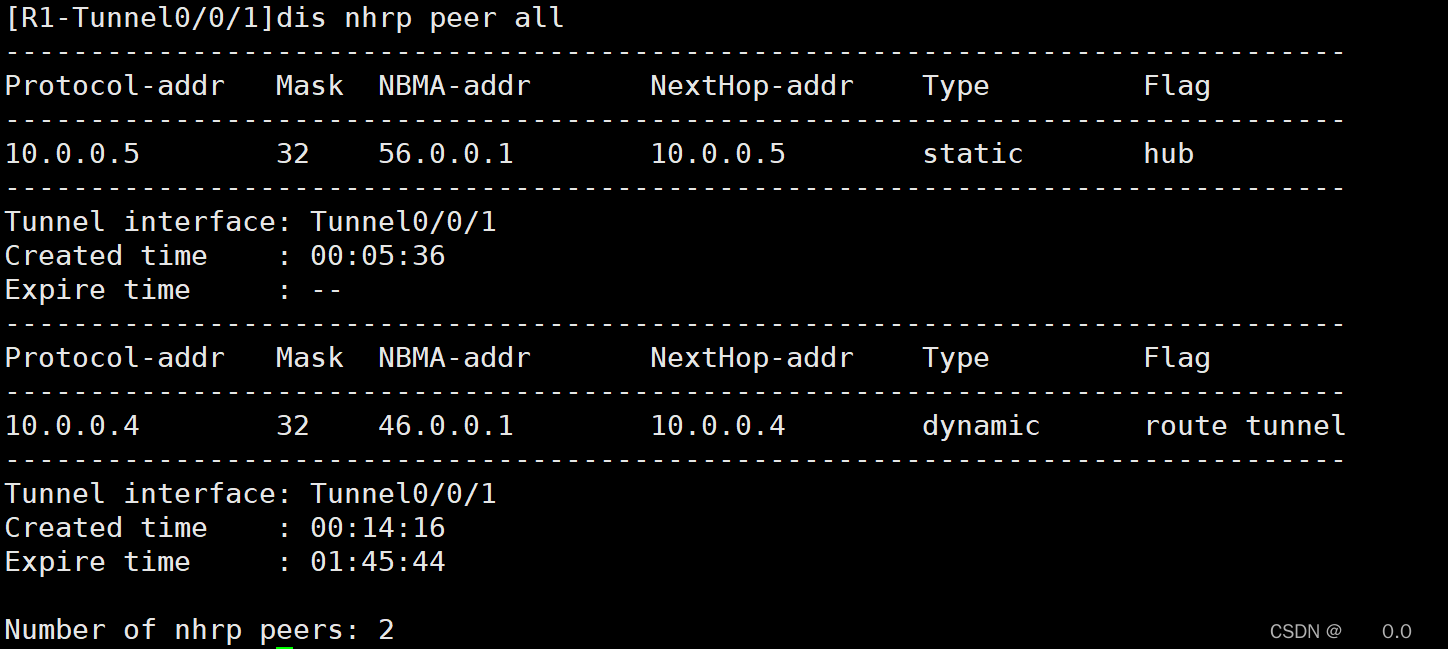 [R1-Tunnel0/0/0]dis nhrp peer all